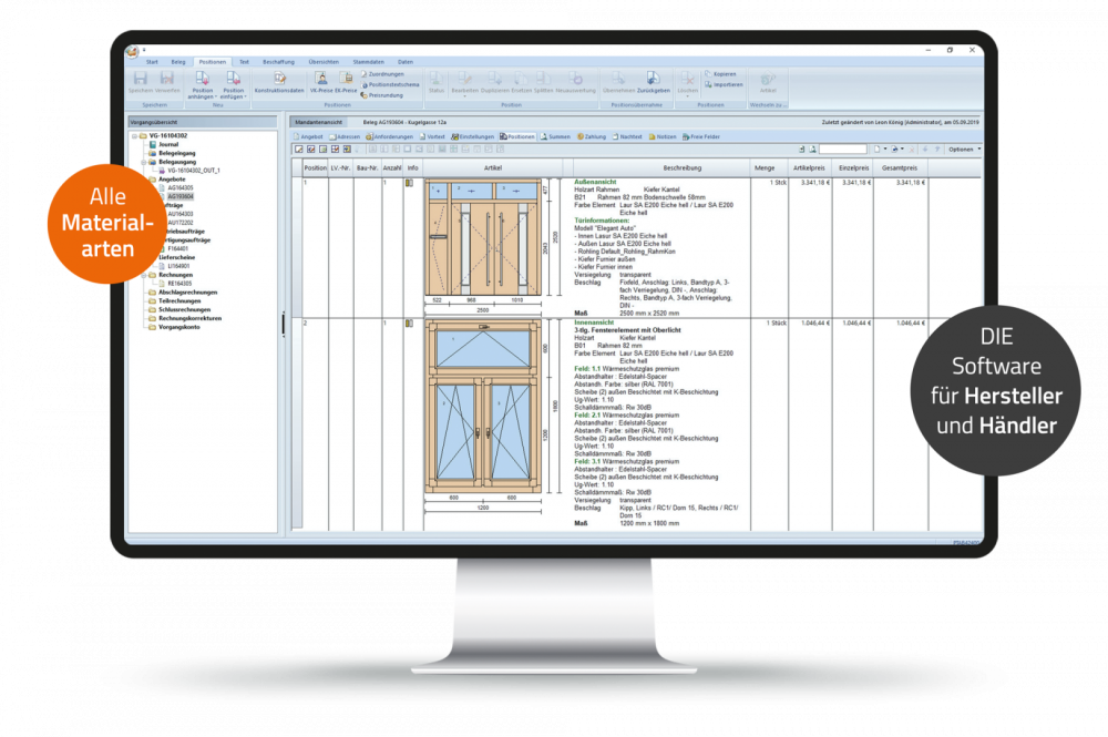 - Autom. Preiskalkulation auch beim Import von Haustürfüllungen oder Rollläden externer Lieferanten