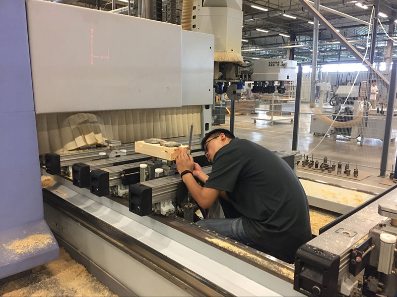 2017.08.04开始,klaes中德团队携手德国Homag、德国Leitz、德国Winkhaus在森鹰进行了为期一周的调试,本次调试的是一台Homag BMG 511,之前只用来做阳光房,本次调试其做铝包木窗。